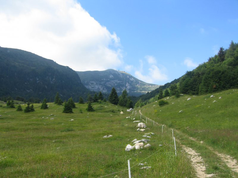 The trail stretches mainly on Northern Monte Baldo. The views of Lake Garda and the Dolomites, of the Rhaetian and of the Prealps of Trentino, Veneto and Lombardy are unique and extraordinary. On the brightest days the view is just incredible: you can admire the Po Valley and even the Apennines of Tuscany and Emilia Romagna. The flora on this mountain is extremely rich and boasts magnificient species of high scientific value, some of which trace back to the Pre-Ice Age. In the Quaternary Monte Baldo was different compared to other Northern mountain ranges. Its peaks were not entirely covered by ice, that here could reach the height of 1600 mt, and so some nunataks (exposed rocky elements in an ice field not covered with ice) formed and certain flower species grew on them. When the ice melt, these species kept on living on the ridges and did not colonized other zones. A very important example of this isolation and speciation is represented by the Callianthemum kerneranum, a species that lives only on Monte Baldo.The trail starts in the locality of Festa, 2 km from the town of Brentonico. Leave the car park behind your shoulders and take the asphalted uphill road.