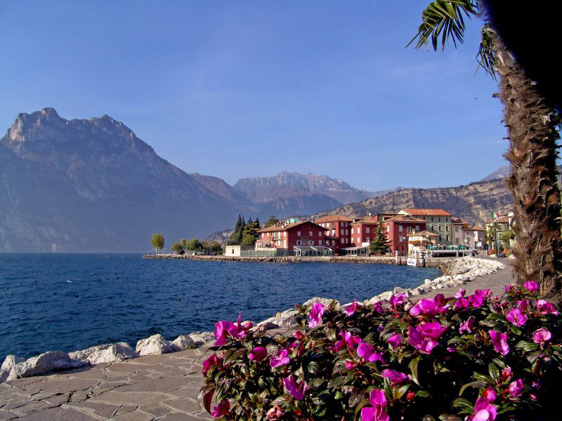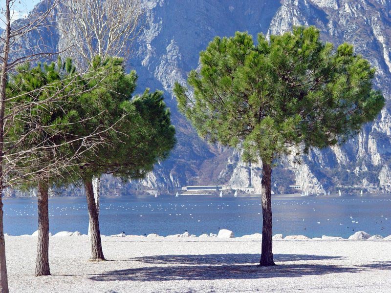 Da Torbole si segue la ciclo-pedonale lungo il lago fino a Riva del Garda. Per strada asfaltata si risalgono le pendici del Monte Tombio mentre sotto di noi si apre il panorama su tutto l’Alto Garda. E’ questa la salita più impegnativa del percorso.