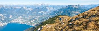 Si raggiunge il Monte Garda e quindi l’abitato di Pannone. Da qui per strade secondarie si arriva a Valle San Felice, per poi giungere all’abitato di Loppio sempre per vie secondarie, sterrate. Si attraversa la S.P. percorrete la pista ciclabile fino alla periferia dell’abitato di Mori dove si gira per raggiungere Sano. Da Sano si sale a Castione e quindi per la strada dei Ruderi di Dosso Maggiore ci si dirige verso Brentonico (collegamento con itinerari dell’Altopiano di Brentonico). Da Brentonico si prende la strada per la località Festa dove si prende la strada “ brentegana ” fino a giungere al bivio per Malga Campei.A Malga Campei si continua diritti sulla strada sterrata fino al termine dove si sale a destra nei prati fino a giungere al Monte Varagna (collegamento con discesa dal Monte Altissimo Rifugio Damiano Chiesa). Si scende per la strada del Monte Baldo fino a raggiungere i Prati di ci si dirige verso sud sul pianoro Nago, dove dopo qualche centinaia di metri si va a sinistra per una sterrata che taglia tutte le pendici dell’altissimo in direzione sud (collegamento con Malcesine) per poi tornare (poco dopo la sorgente di Casera Vecchia) verso nord ed immettersi nuovamente sulla strada del Monte Baldo nei pressi di Malga Zures, da cui si scende verso Nago.